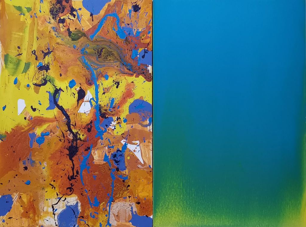 In his poetic abstraction constructed through the cultural awareness of aesthetics, the metaphysical interpretation of humanity and the liberation of his inner self, Li Lei turns the viewing experience into an intimate and emotional conversation about the deeper meaning of life, from the origin and evolution of the universe to the composition of life and the relationship between time and space. His diptych series Calm Abiding with Awareness, to be exhibited for the first time in his upcoming solo exhibition “Poetic Abstraction” concurrently held in 3812 Gallery London and Hong Kong, is the epitome of the artist’s approach to art. The juxtaposition between the expressionistic composition with boldly contrasted colors and the expanse of meditative color fields with subtle gradation creates a tension between the emotional and the rational, the material and the spiritual, and the “hundred species of flowers” and the inner light.